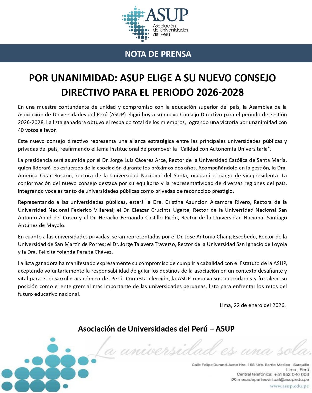 El Consejo Directivo de dicha entidad resolvió esta decisión en la resolución emitida N° 0029-2024, donde consideró que la Ley N°31803, la cual modifica la Ley Universitaria, aún no ha sido reglamentada.